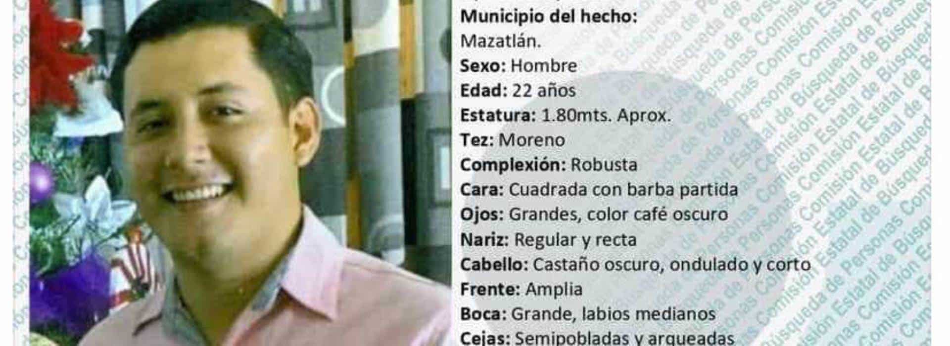El joven Esdras Eduardo Martínez Gamboa, de tan solo 22 años de edad, desapareció el pasado 1 de febrero en el puerto de Mazatlán, por lo que su familia dio aviso a la Fiscalía General del Estado y a la Comisión Estatal de Búsqueda de Personas.