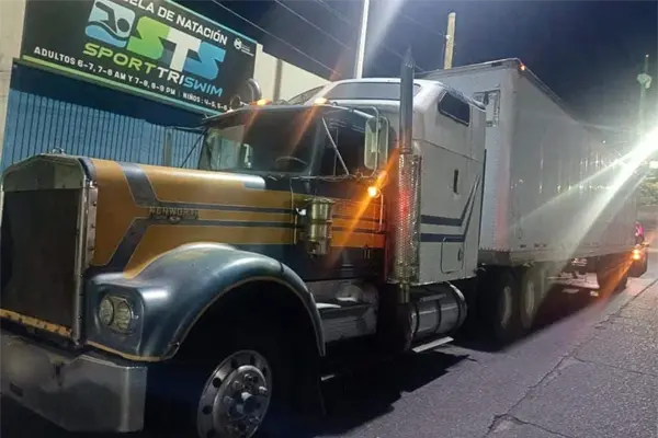 La información señala que el vehículo de carga asegurado es un tractocamión marca Kenworth, con caja metálica, el cual cuenta con reporte de robo violento el 7 de febrero de este año.