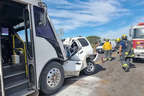 En dicha ubicación, impacataron de frente una camioneta Chevrolet Tracker, de color blanco, con placas de Sinaloa, contra un camión de reparto de personal, al parecer de conocida empresa procesadora de aves.
