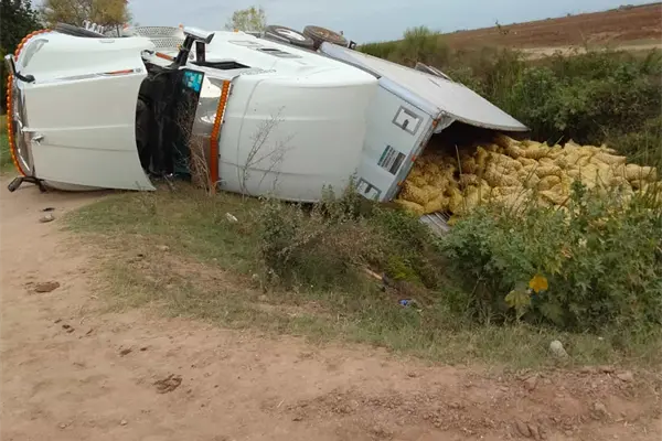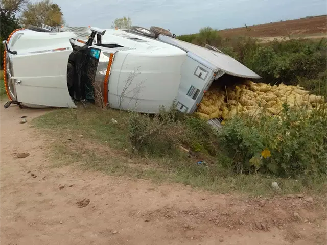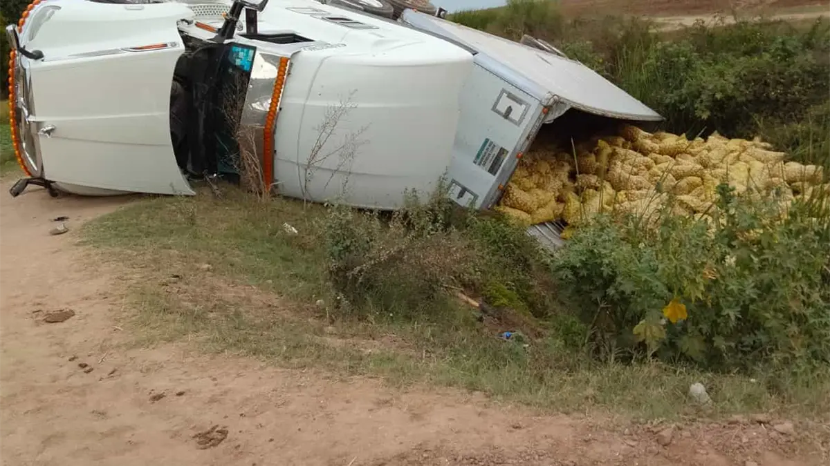 Importantes pérdidas en daños materiales, dejó como saldo la volcadura de un tractocamión cargado con cerca de 40 toneladas de papa en arpillas y que era trasladada para su comercialización; el chofer sufrió golpes menores.