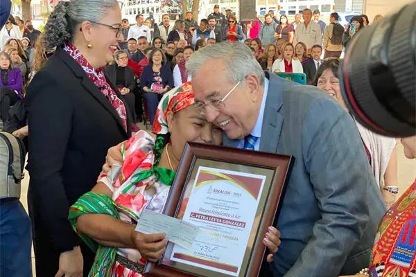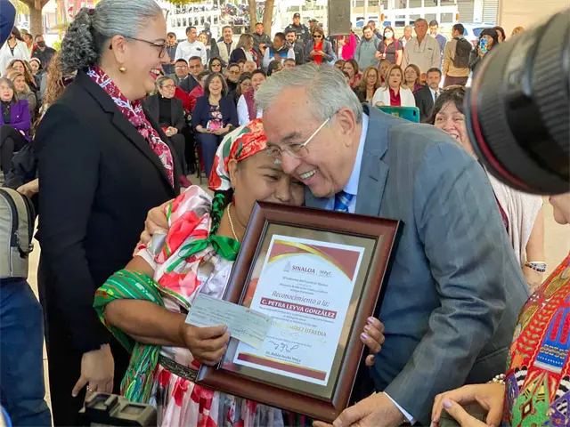 La mujer raramurí Petra Leyva González recibió el premio «Agustina Ramírez» por parte del Gobernador de Sinaloa, Rubén Rocha Moya, por ser una luchadora social indígena.
