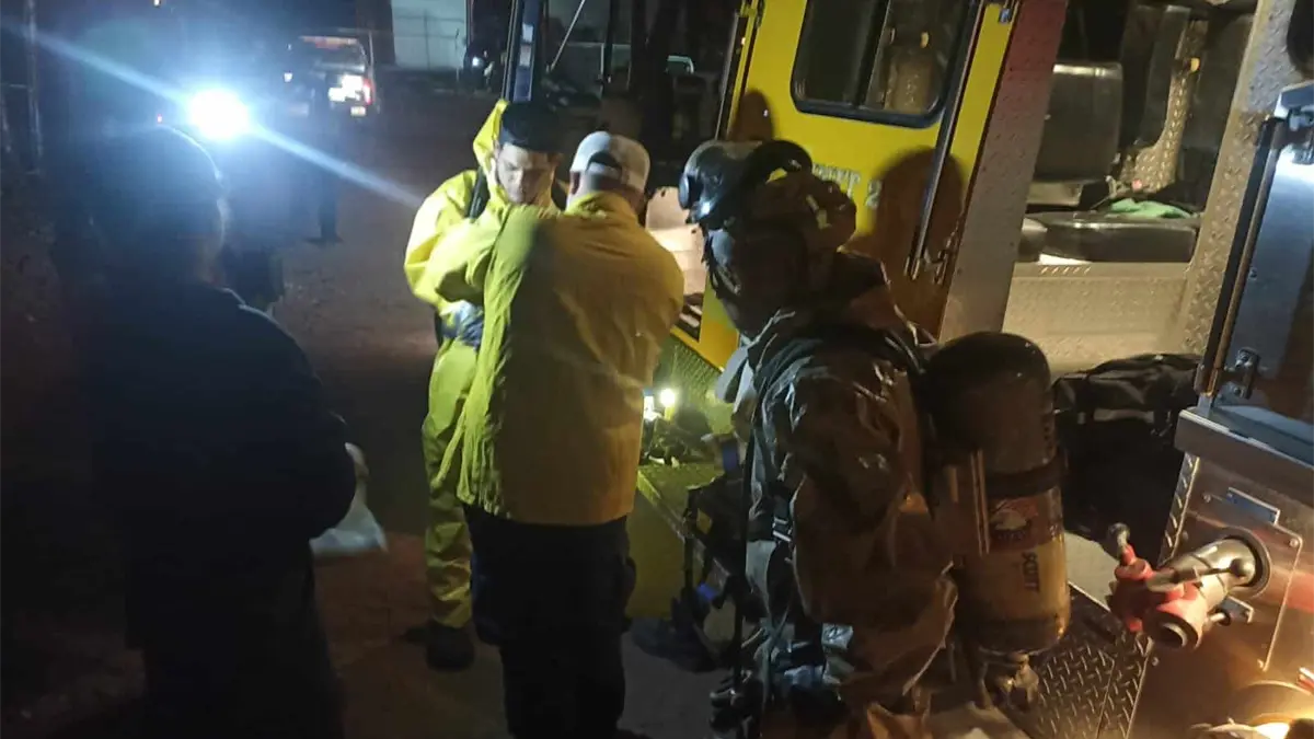 Trascendió que mientras procesaban los químicos y reactivos asegurados derivado del cateo, esta tarde–noche accidentalmente se les cayó un contenedor con 50 litros de cianuro.