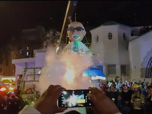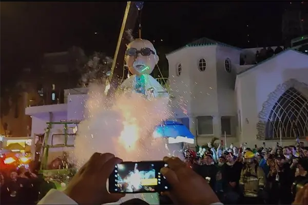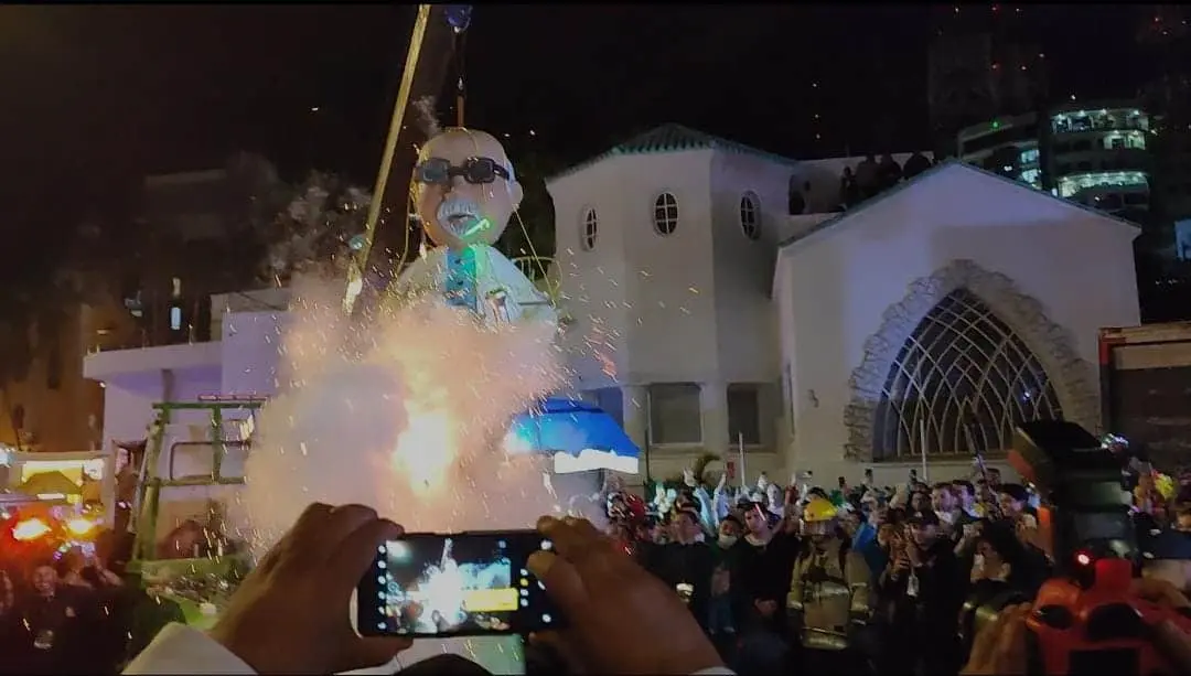El «monigote» fue colgado y frente a miles de asistentes, se escuchó la explicación del por qué se decidió la quema por el conocido personaje y de esta tradición que es muy conocida y aplaudida por los turistas.