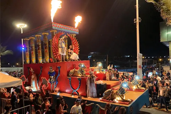 El trabajo casi artesanal de los carros alegóricos luce con kilos y kilos de diamantina de diferentes colores, que son esparcidos sobre las estructuras, así como metros y metros de luces LED que adornan las mismas, para darles un ambiente de otro «universo» a las figuras de metal forradas de tela.