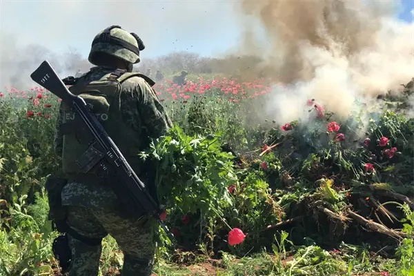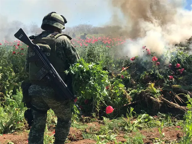 Elementos del Ejército Mexicano y Guardia Nacional aseguraron y destruyeron 6.5 hectáreas de amapola entre los poblados de Zapotillo y Tierritas Blancas, pertenecientes al municipio de Mocorito.
