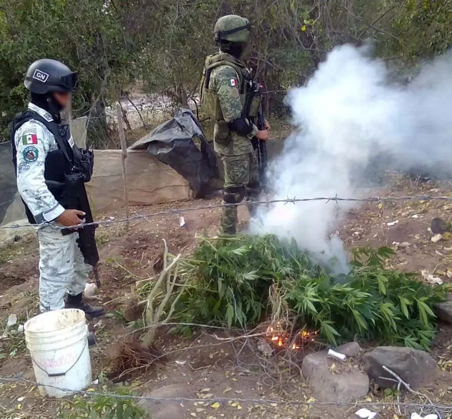 Los trabajos por parte del Ejército Mexicano y de la Guardia Nacional siguen dando resultados, en el estado de Sinaloa, ya que a los ya conocidos decomisos de los recientes días se suma a ello un plantío de mariguana que fue ubicado y destruido en el municipio de Elota.