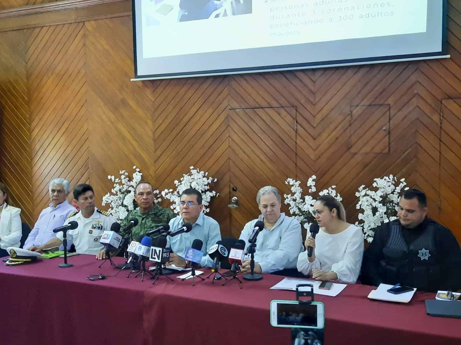 La rueda de prensa fue encabezada por el alcalde de Mazatlán, acompañado deel Ayuntamiento, Rafael Mendoza Zataráin, Raúl Rico González, Director de Cultura, Eloy Ruiz Gastélum, Coordinación de Protección Civil, Verenice Oleta Benítez, Oficial Mayor del Ayuntamiento.