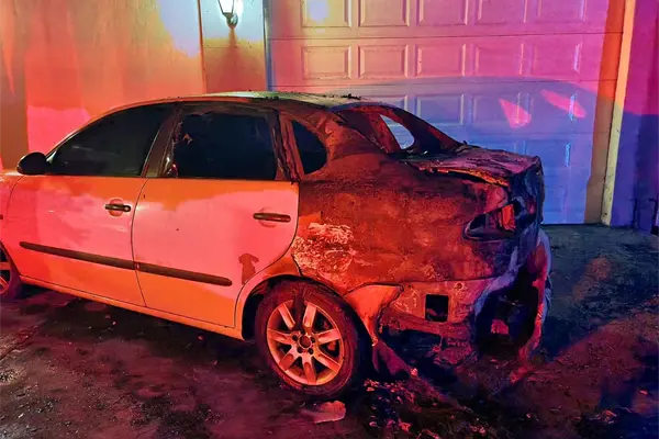 Junto al vehículo se encontró una botella con la que presuntamente le rociaron gasolina