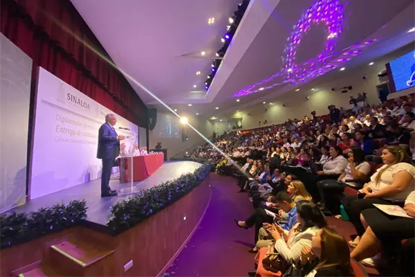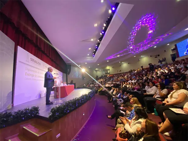 El Gobernador de Sinaloa, Rubén Rocha Moya, hizo entrega de las constancias de los diplomado en Matemáticas y Ciencias a 560 docentes de Educación Básica de todo el estado.