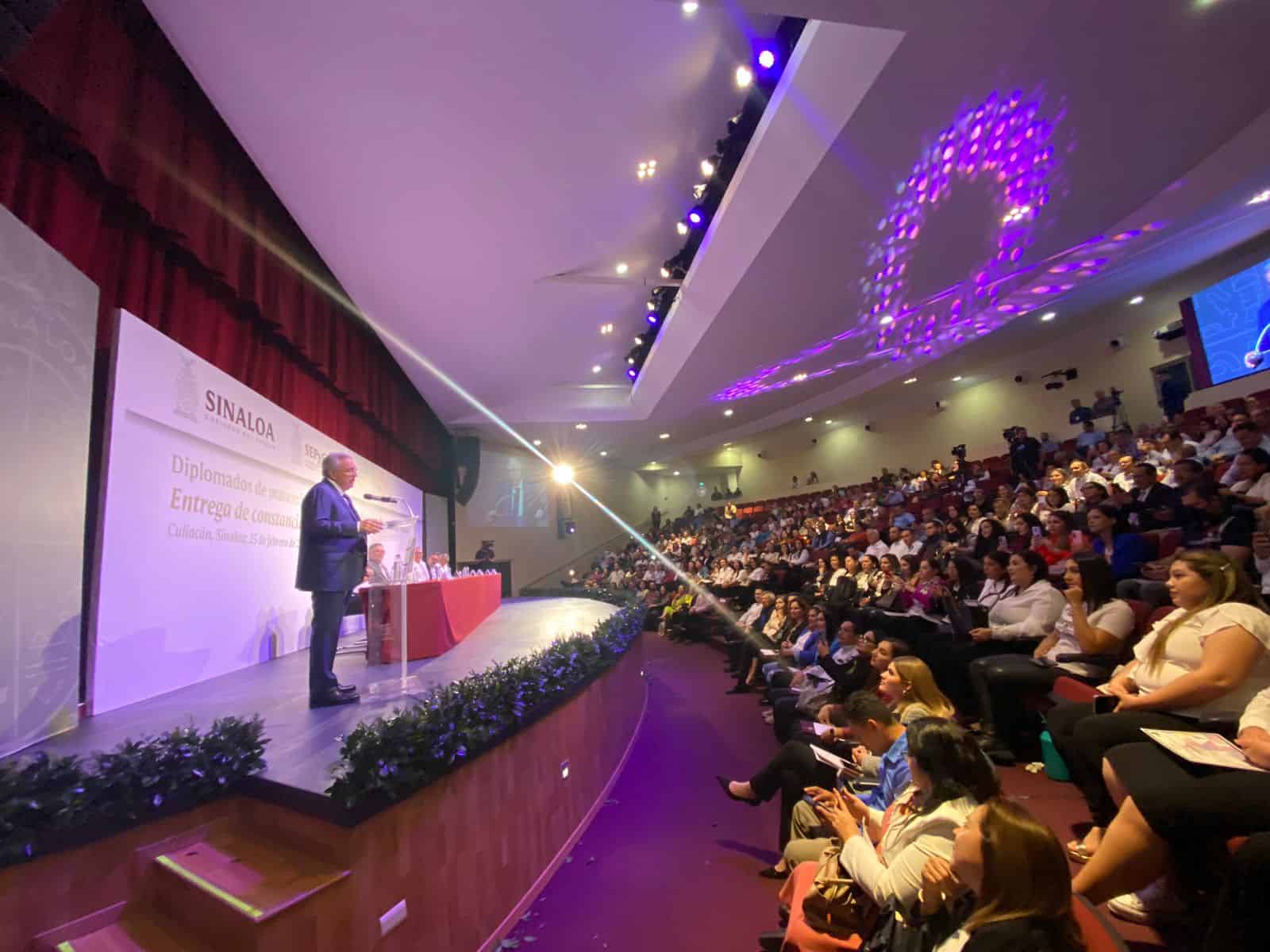 Rocha Moya entrega constancias de diplomado en matemáticas y ciencias a docentes de Educación Básica