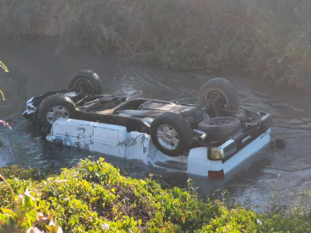 El conductor de la camioneta que participó en el encontronazo cayó al canal y resultó con golpes leves.