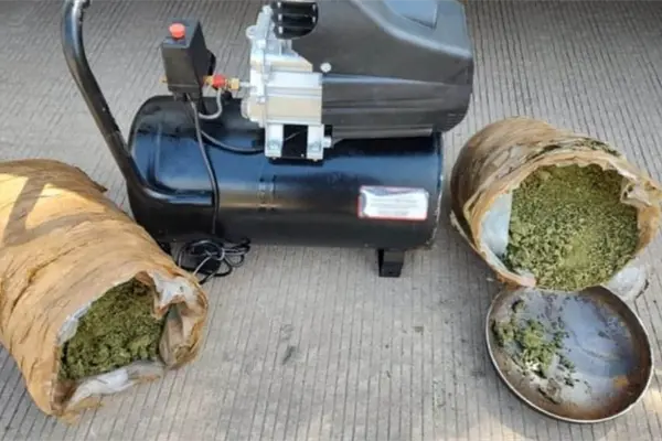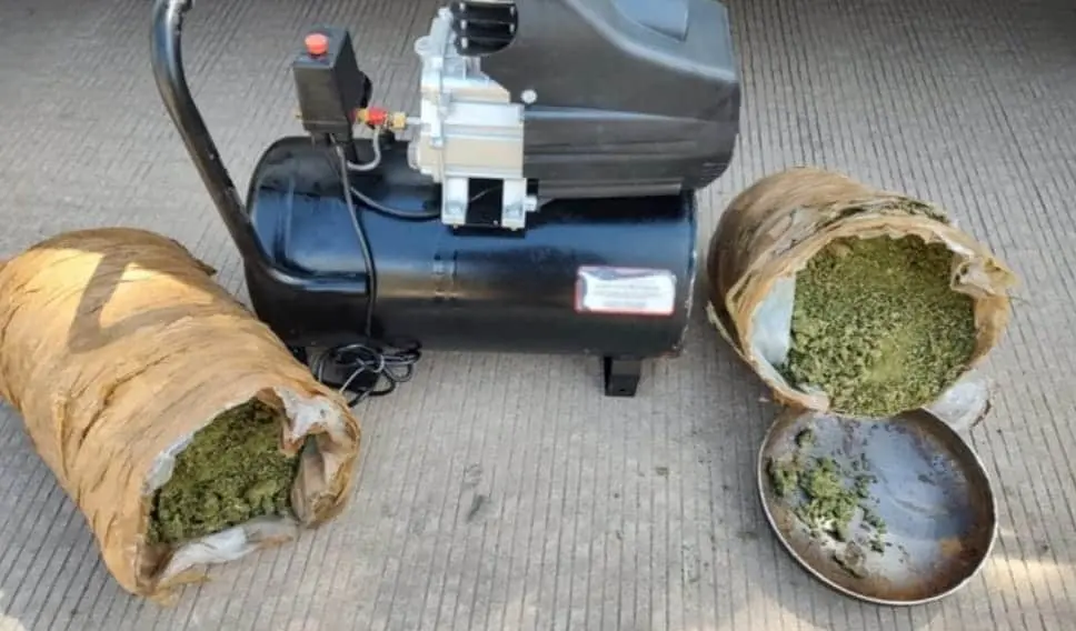 El paquete, en cuyas etiquetas tenía como destino un domicilio del estado de Quintana Roo, fue separado para revisarlo de manera detallada y encontraron un compresor de aire, el cual fue abierto y en el interior estaban ocultos varios kilos de hierba seca y verde con las características de la mariguana.
