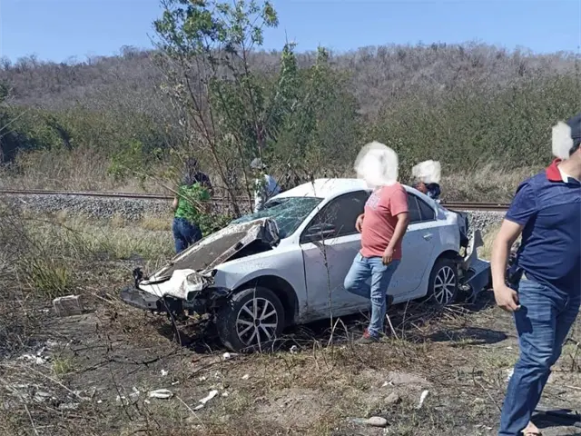 Un fuerte trenazo se registró en la comunidad de Los Ojitos, en el municipio de El Rosario, cerca de las 14:00 horas de este lunes, cuando un carro tipo Jetta, de color blanco, intentó ganarle el paso a la locomotora, pero este lo alcanzó y los sacó volando varios metros adelante.