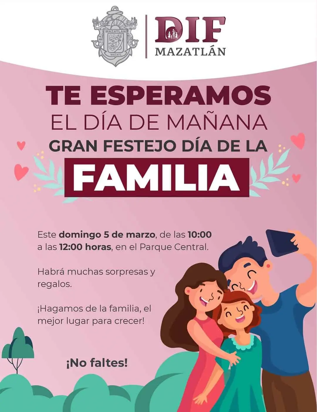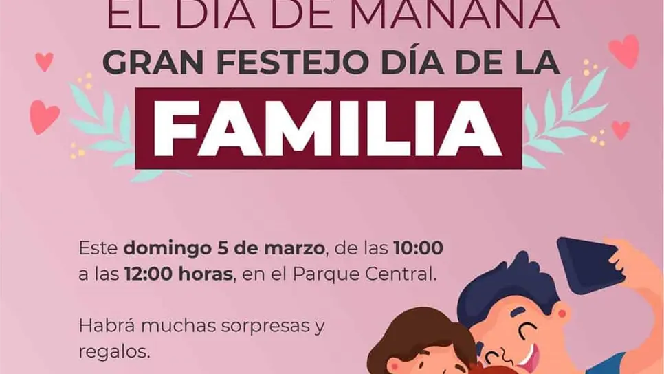 Con muchas sorpresas, regalos y actividades diversas para realizar en familia, el Gobierno Municipal y Sistema DIF Mazatlán celebrarán el Día de la Familia, este domingo 5 de marzo, en el Parque Central.