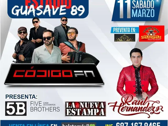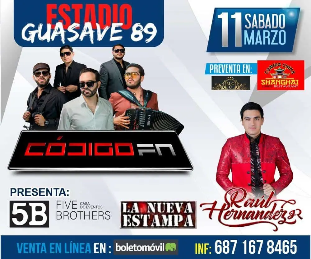 ¡Gran fiesta se espera en Guasave el próximo fin de semana! Código FN y Raúl Hernandez Jr. se darán cita para brindar un concierto inigualable a todos sus fans.