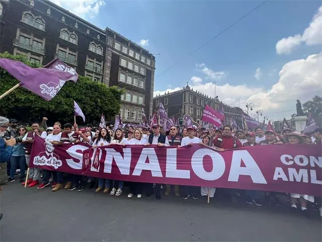 Rocha y funcionarios de Sinaloa encabezan contingente en concentración de AMLO