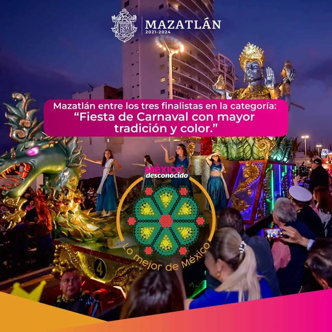 Cabe destacar que desde el inicio del concurso, Mazatlán, con su máxima fiesta porteña, compitió con la nominación de carnavales de Veracruz, Huejotzingo, Tlaxcala, Tlayacapan, Mérida y Campeche, y el próximo 28 de marzo estará participando en la última fase, con solo tres estados del país.