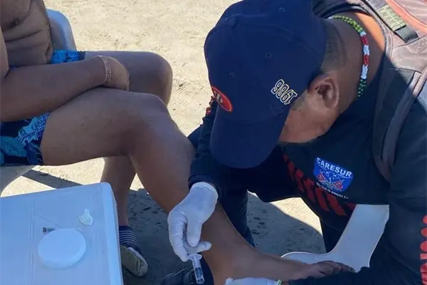 Al lugar llegaron paramédicos de Grupo Caresur, quienes atendieron a ambos, uno después de otro, tras presentar dolor, pequeño sangrado e hinchazón en todo el pie.