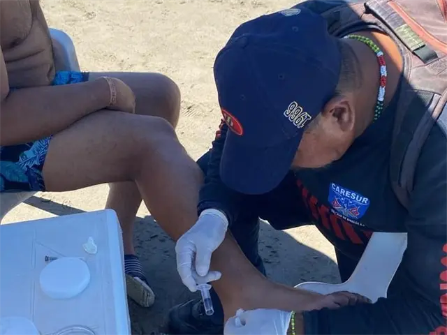Un niño y un joven se bañaban en diferentes zonas de la playa de la Isla de la Piedra, en Mazatlán, cuando sufrieron picaduras por mantarraya, por lo que requirieron atención médica.