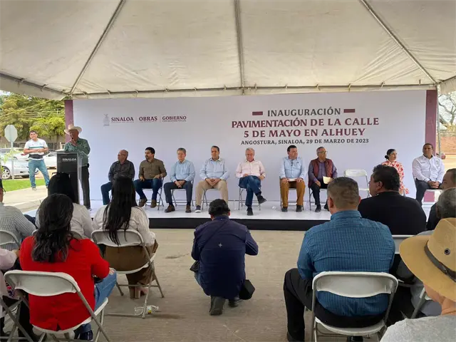 Un kilómetro de la calle 5 de febrero en Alhuey, Angostura fue inaugurado por el Gobernador de Sinaloa, Rubén Rocha Moya, así como el sistema de drenaje que por años estuvo colapsado.