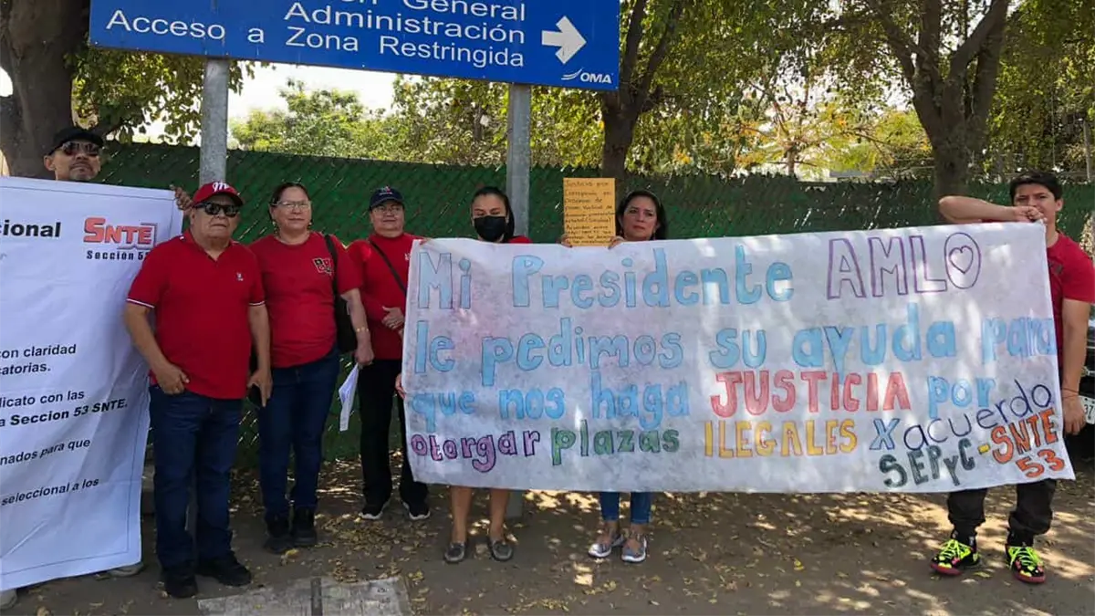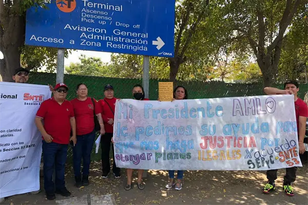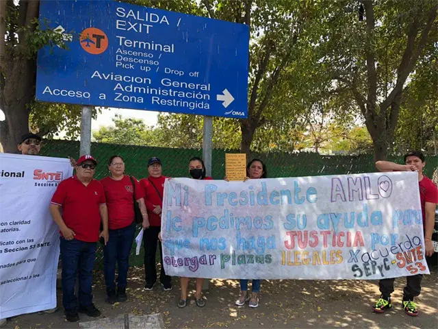 En el Aeropuerto Internacional de Culiacán maestros se manifestaron y buscan hablar con el presidente por la entrega de plazas presuntamente irregulares.