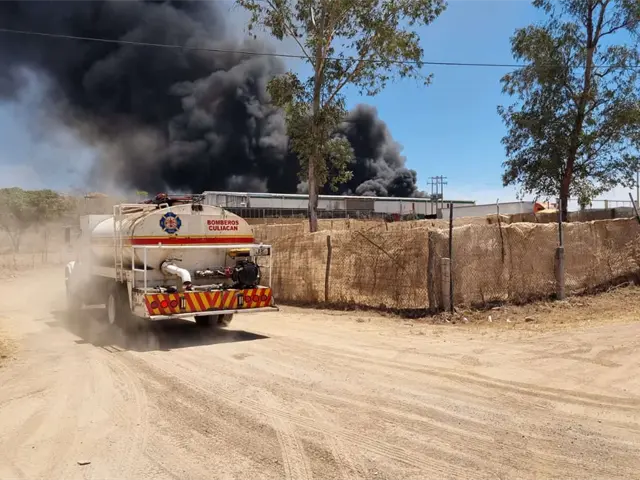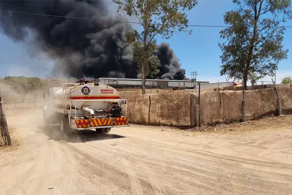 Un incendio se registró esta mañana en una planta recicladora de plástico que se ubica en la salida sur de Culiacán, entre el Splash y La Laguna Colarada.