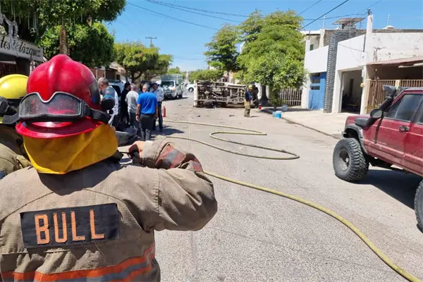 Los bomberos señalaron que el accidente se dio por la calle Ortencia y Carlos Chávez, cuando una camioneta Nissan de una purificadora de agua circulaba por la calle Carlos Chávez y, al llegar a la esquina con Ortencia, fue impactada por un automóvil Honda.