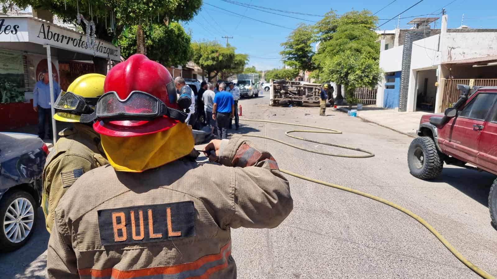 Tres personas lesionadas y varios autos dañados fue el resultado de un choque volcadura que se dio en la colonia Las Huertas, en Culiacán.