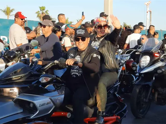 Durante el desfile qué dio inicio en punto de las 17:00 horas, se pudo ver al Presidente Municipal montado en su caballo de acero; lo acompañó su esposa, María Teresa Apodaca Muñoz quienes juntos y durante las más de dos horas de recorrido sobre el Malecón, saludaron a los más de 18 mil motocicletas.