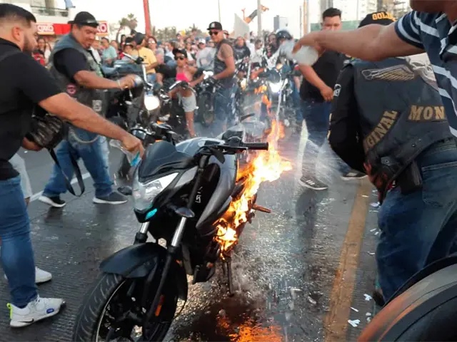 El tradicional desfile de motocicletas sobre la Avenida del Mar en el Puerto de Mazatlán, por poco termina en tragedia, y es que, de manera repentina mientras los miles de motociclistas y mazatlecos disfrutaban del recorrido, una motocicleta ardió en llamas.