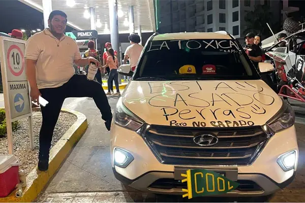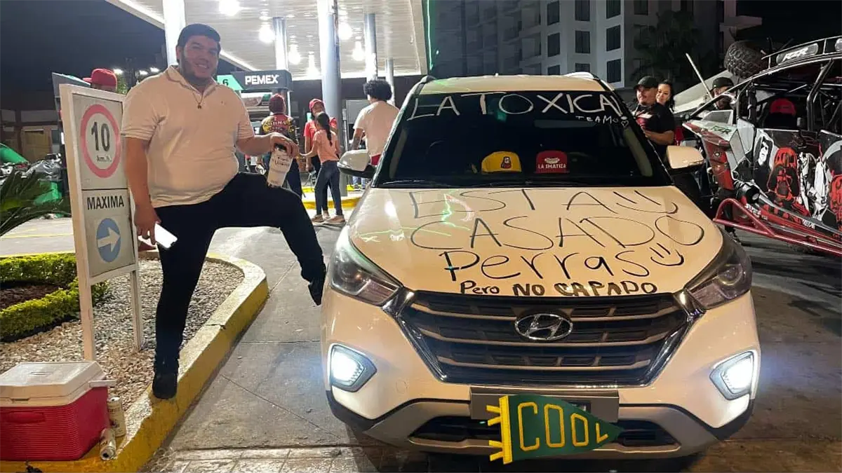 Desde «Está casado», «La Tóxica», «Te amo», «No le hablen, está casado» y hasta algunos más fuertes como «Dura 7 minutos», «La tiene chiquita» y hasta «Tiene una hija», eran las leyendas que adornaban a la unidad con lo que pareciera ser un plumón negro en la carrocería, y blanco en los cristales.