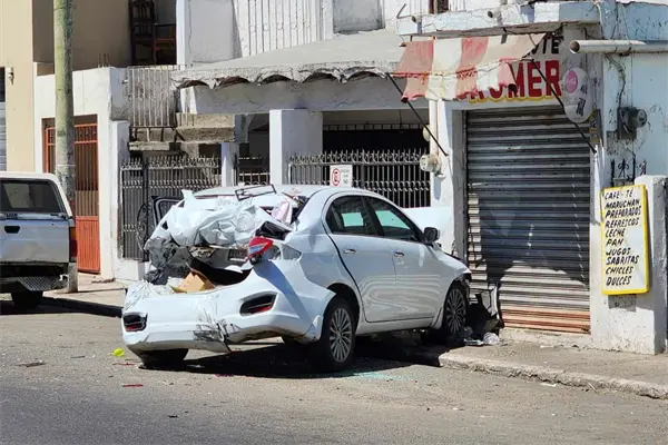 Un fuerte accidente se registró esta mañana en la colonia Centro, justo detrás del Parque Martiniano Carvajal a unos metros del Malecón luego de que un chofer de camión sufriera un descuido y causara una carambola.