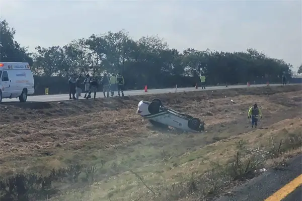Con las llantas hacía arriba quedó un vehículo tras accidentarse por la carretera Maxipista, de Culiacán a Mazatlán.