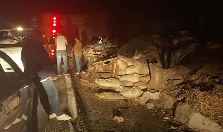 Vuelca tráiler con purina en la carretera libre a la altura de Elota