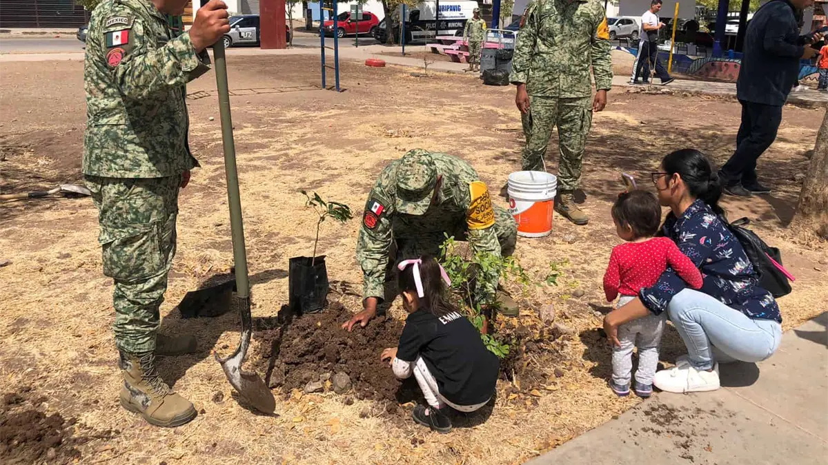 En el marco del Día Internacional de la Madre Tierra, el Ejército Mexicano llevo a cabo actividades de labor social en las colonias Alturas del Sur, Ampliación El Barrio y Las Coloradas, en Culiacán.