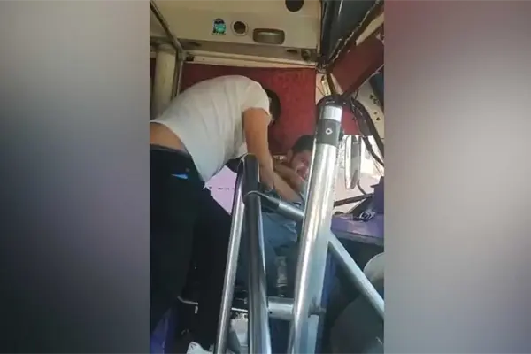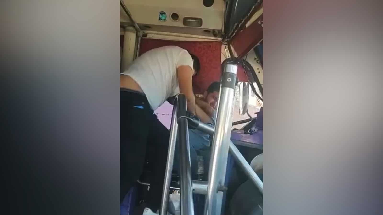 Asimismo, se aprecia como los pasajeros que se encontraban a bordo de la unidad intentan separarlos y les expresan que se calmen y que el chofer de blanco se calmara y dejara en paz al otro, ya que estaba siendo sometido.