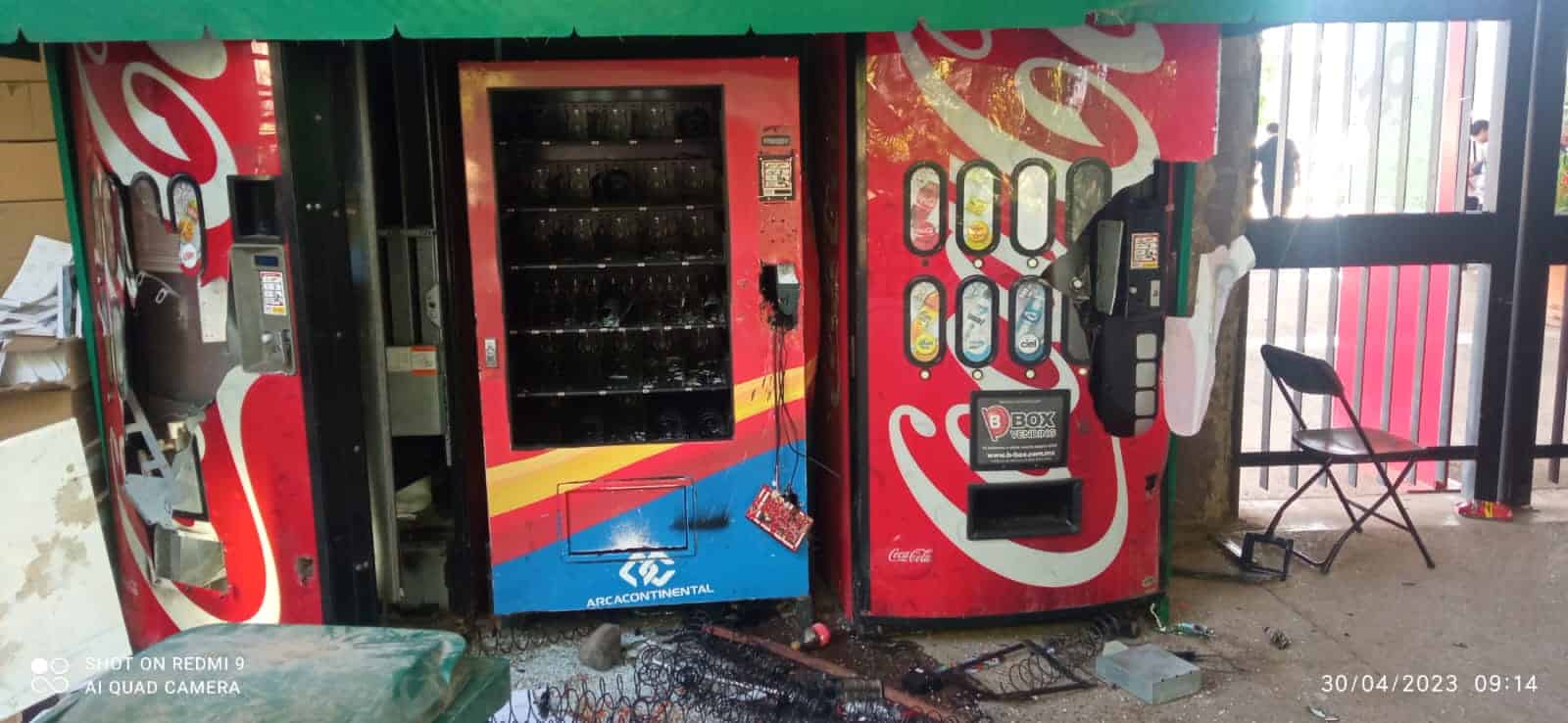 Las máquinas estaban forzadas de las ranuras por donde se ingresan los billetes y monedas, al parecer con algún objeto metálico rompieron poco a poco hasta hacer una abertura que les permitiera sustraer los productos.