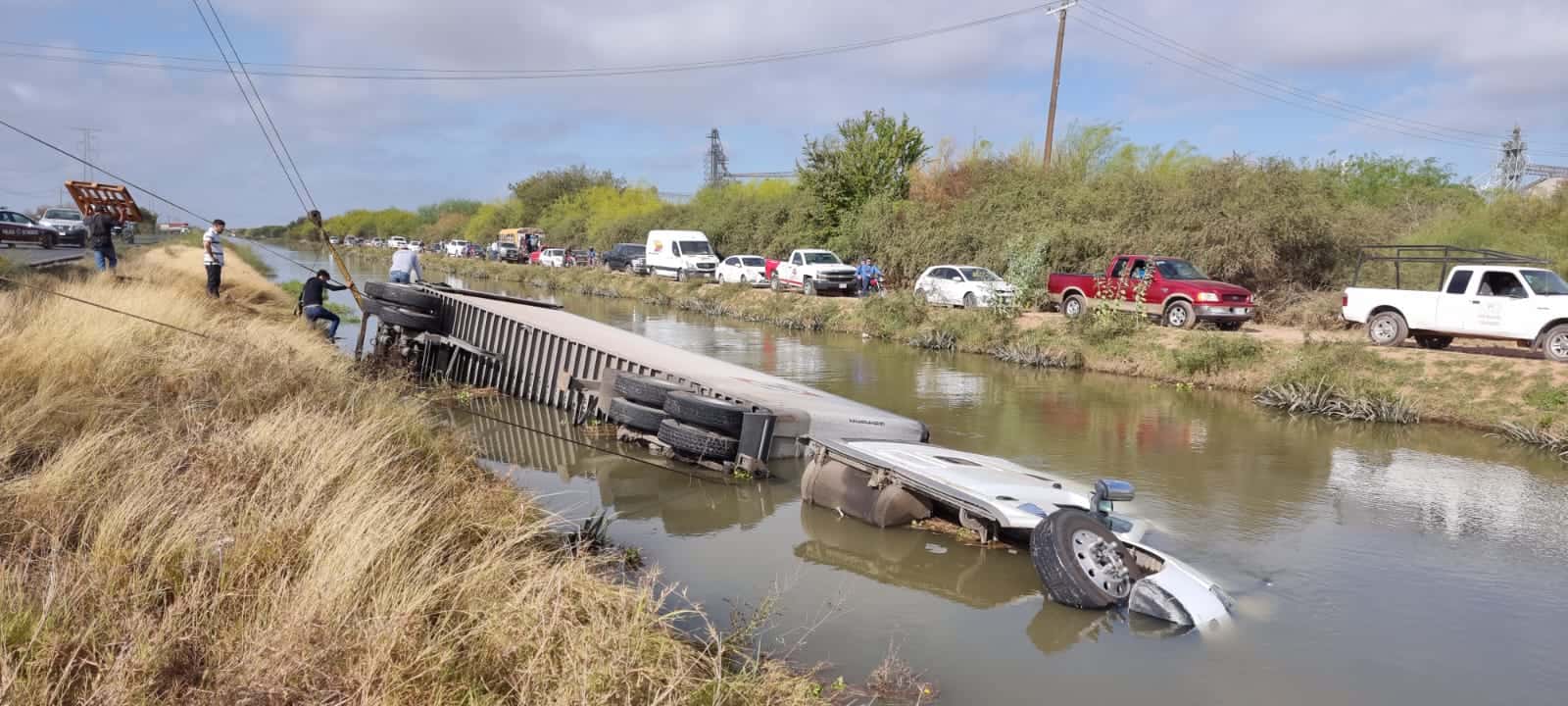 Cierran el Libramiento Oriente - Campo 35 tras caer tráiler al Canal Lateral 18