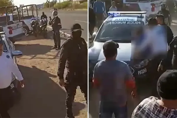 Un grupo de jornaleros agrícolas se agarró a golpes con agentes de Tránsito del Municipio de Ahome que la mañana de este miércoles, 3 de mayo, les hicieron la parada, por ir a exceso de velocidad y circular sin placas.