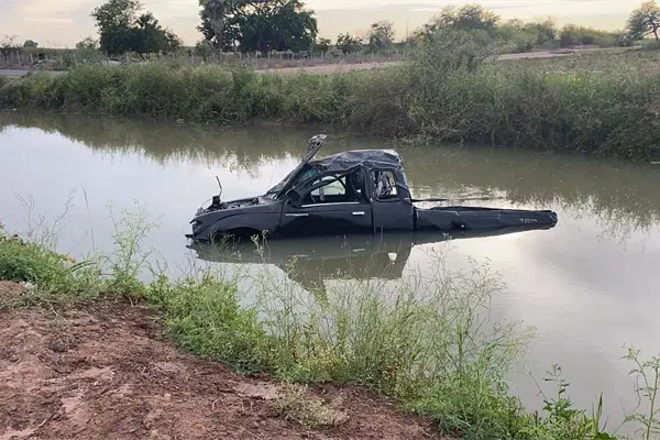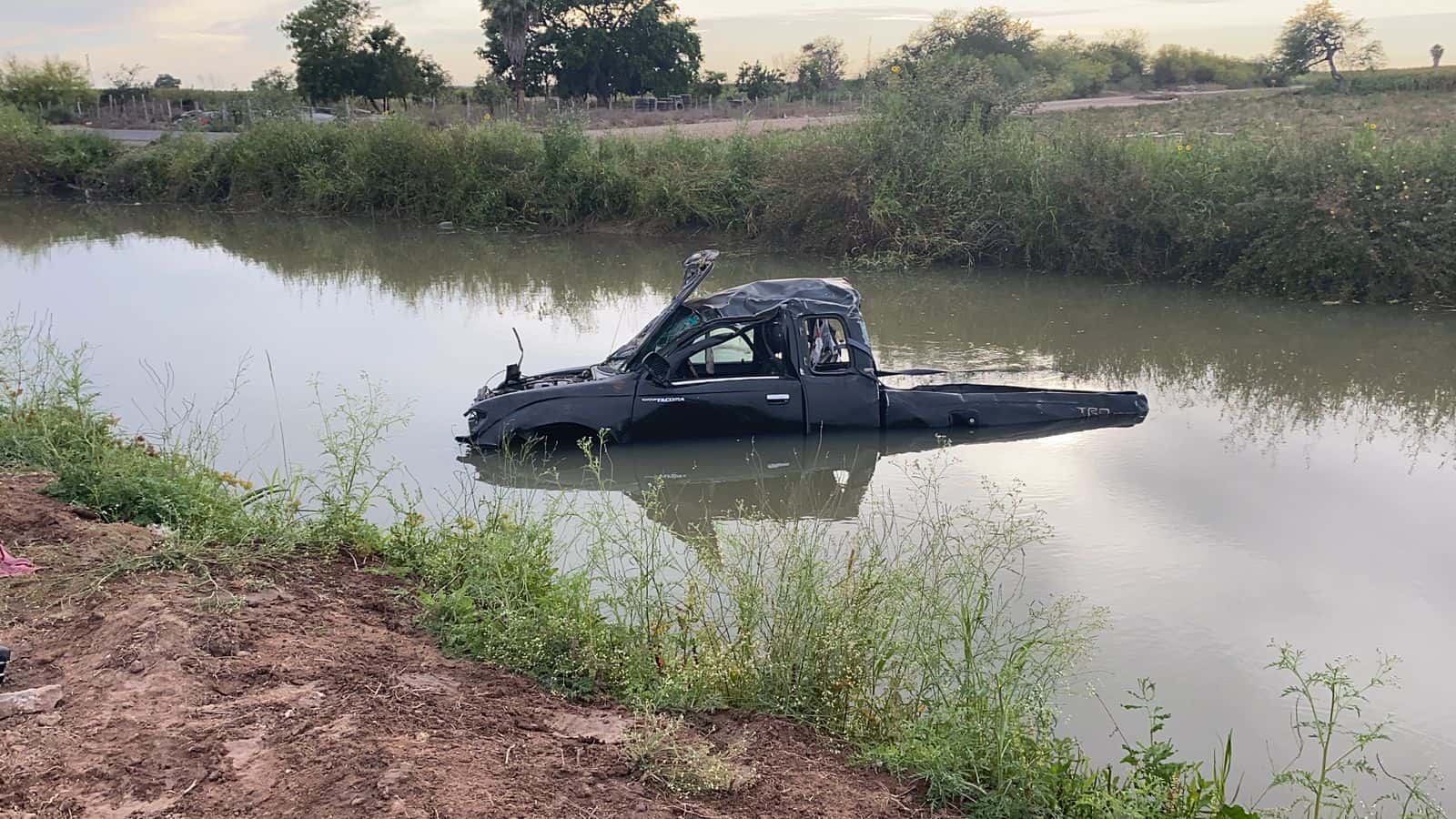 Según las autoridades de Tránsito Municipal, el conductor iba alcoholizado y en exceso de velocidad, cuando justo antes de llegar al ejido Plan de San Luis, perdió el control de la unidad y volcó antes de terminar dentro de la obra hidráulica.