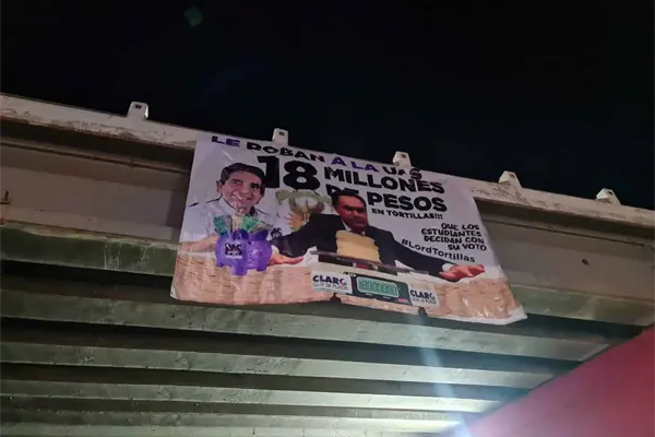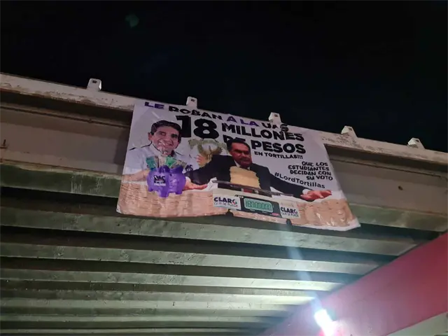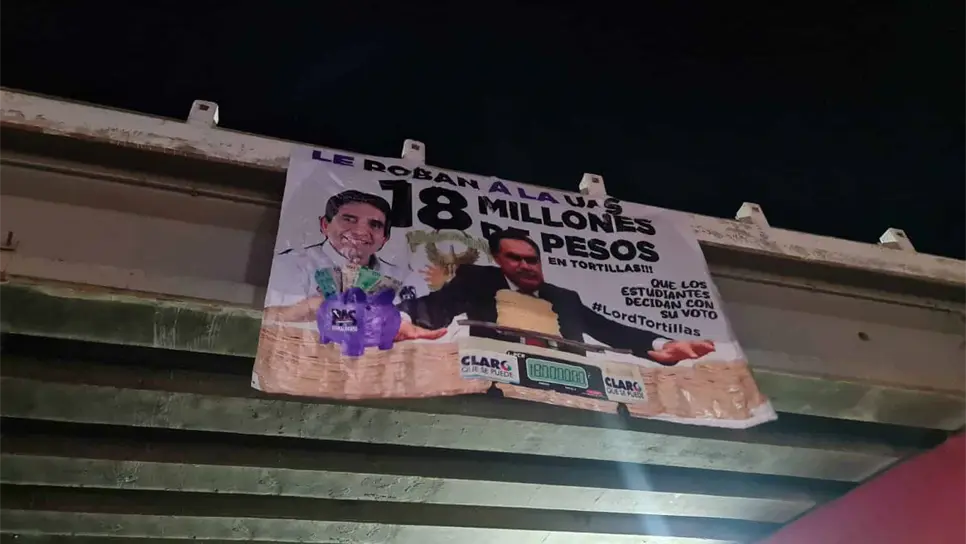 Este lunes amanecieron mantas con l a leyendas «Le roban a la UAS 18 mdp en tortillas», «Fuera el PAS», en distintas avenidas de los municipios de Culiacán, Mazatlán, Guasave y Guamúchil.