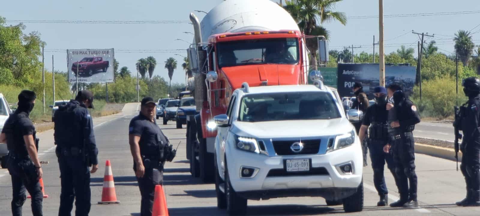La Secretaría de Seguridad Pública y Protección Ciudadana implementó un retén en la carretera Los Mochis-Topolobampo en donde están regresando a los productores que traen comida y agua a los manifestantes que tienen bloqueado el acceso a Petróleos Mexicanos (Pemex) Topolobampo.