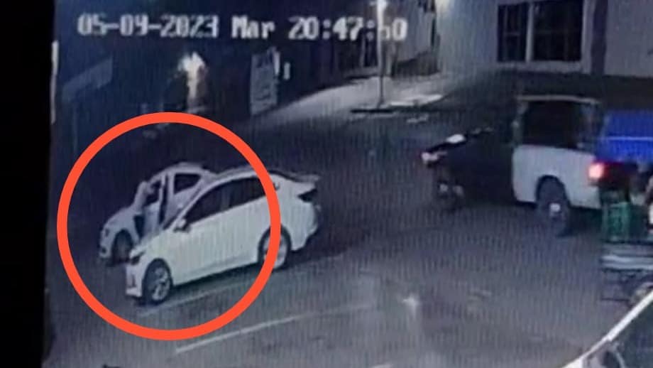 Según lo que se aprecia en el video, el hombre se para en la puerta y camina hacia un vehículo blanco, que se estaciona a un costado del portón de la bodega de flores. Lleva un teléfono en la mano, por lo que se presume que le llamaron para que saliera.