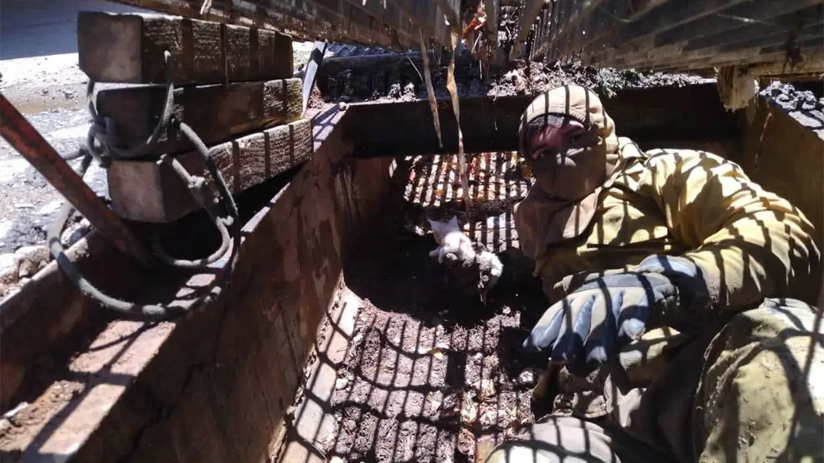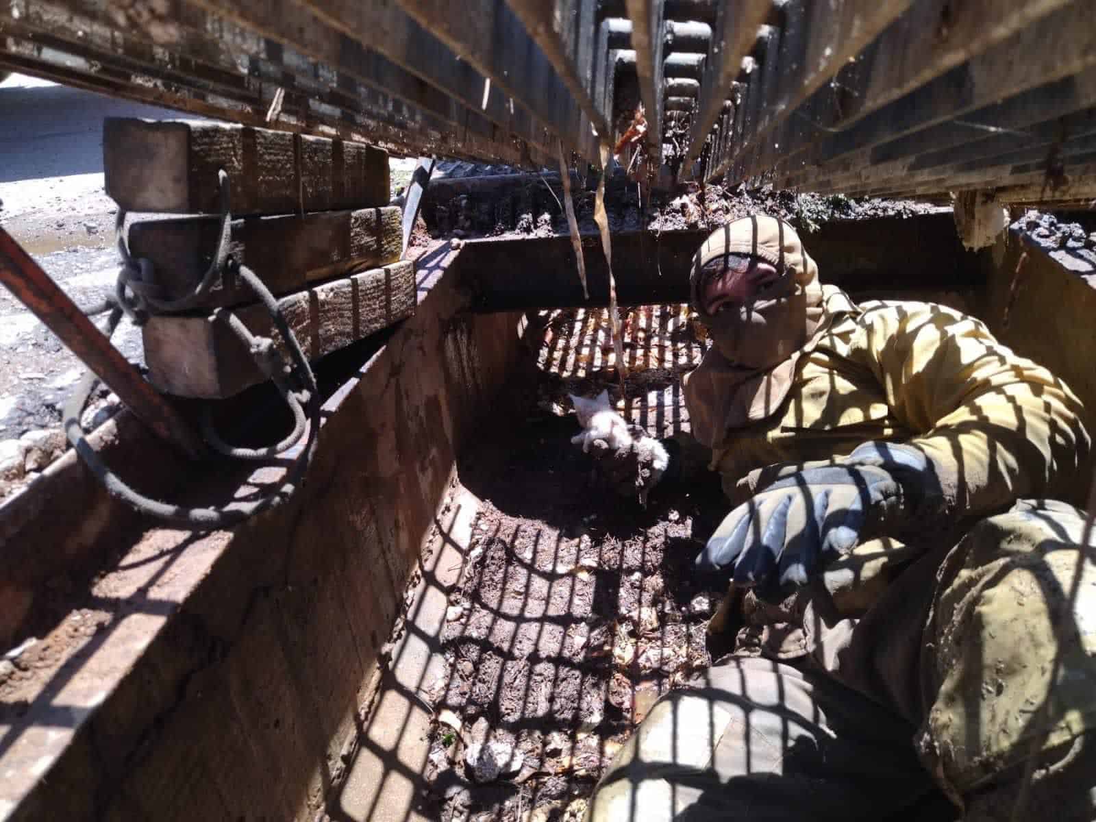 Los traga humo lograron vencer los seguros de la rejilla del desagüe, y una vez en ella se metió uno de los elementos a sacar al animalito para poder atenderlo y ver que no tuviera lesiones.