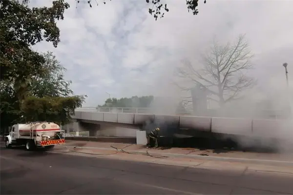 Se registra incendio en el puente Aquiles Serdán, en Culiacán