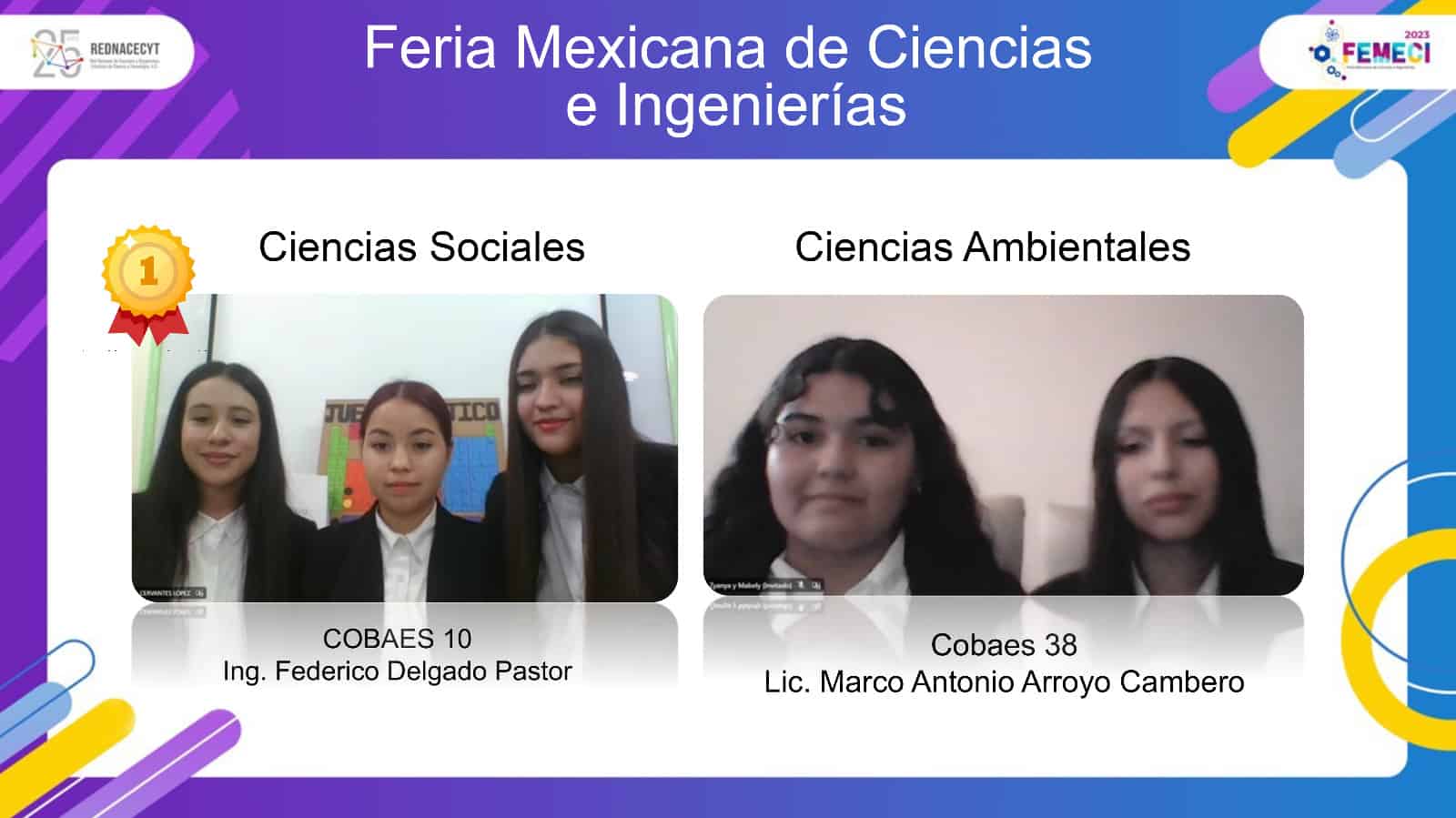 La feria se realizó del 8 al 12 de mayo de 2023, en la ciudad de Villa Hermosa, Tabasco, de manera virtual, dos equipos integrados por las alumnas de Cobaes, fueron parte de la delegación Sinaloa en nivel medio superior dominaron las cuatro áreas del conocimiento del concurso.