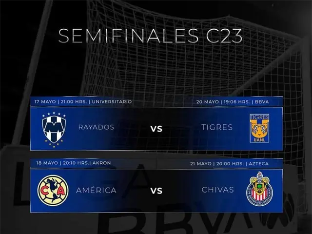 América y Monterrey lograron sacar una buena más no suficiente ventaja de sus compromisos como visitantes y buscarán finiquitar todo cuando reciban a Chivas y Tigres, respectivamente. Te mostramos a continuación la fecha, el horario y la sede de estos dos últimos compromisos de las semifinales del futbol mexicano.