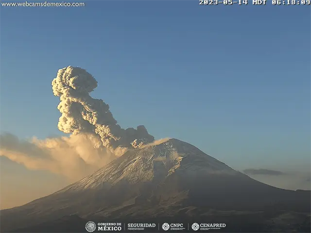 Según el Centro Nacional de Prevención de Desastres (Cenapred), el coloso registró 5 exhalaciones acompañadas de vapor de agua, gases volcánicos y ceniza.