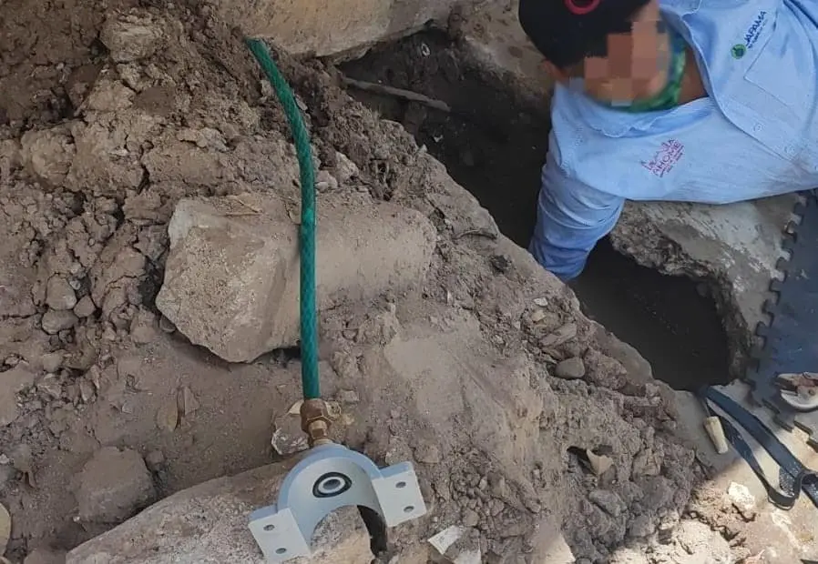Moroso de JAPAMA rompe tubería al tratar de reconectarse y genera fuga
