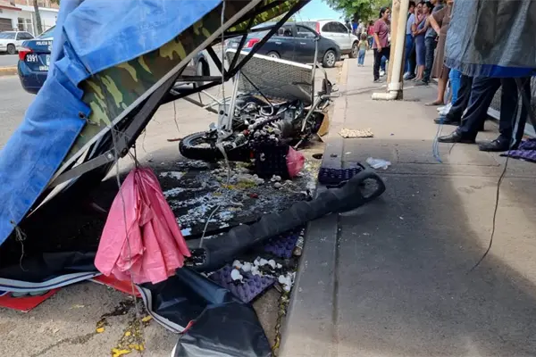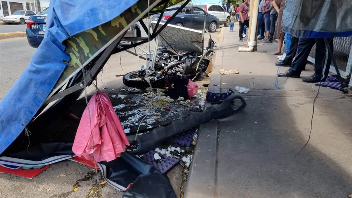 Debido al accidente, la unidad salió proyectada y se impactó con el puesto de venta de huevos, donde se encontraba Celia.